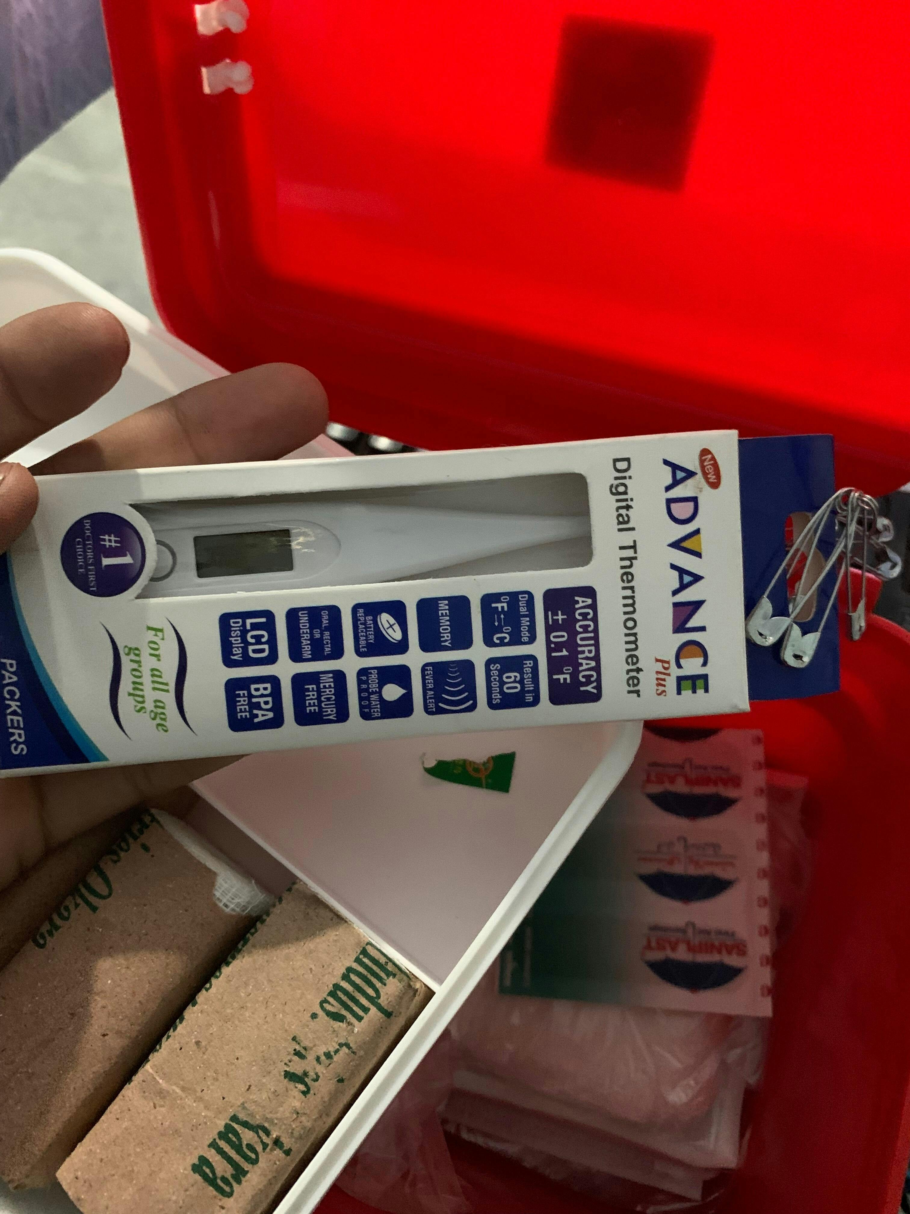 Product jaldi deliver hogaya or sab bandeges thermometer or iss small box main he or car or picnic wagera kay liye best he